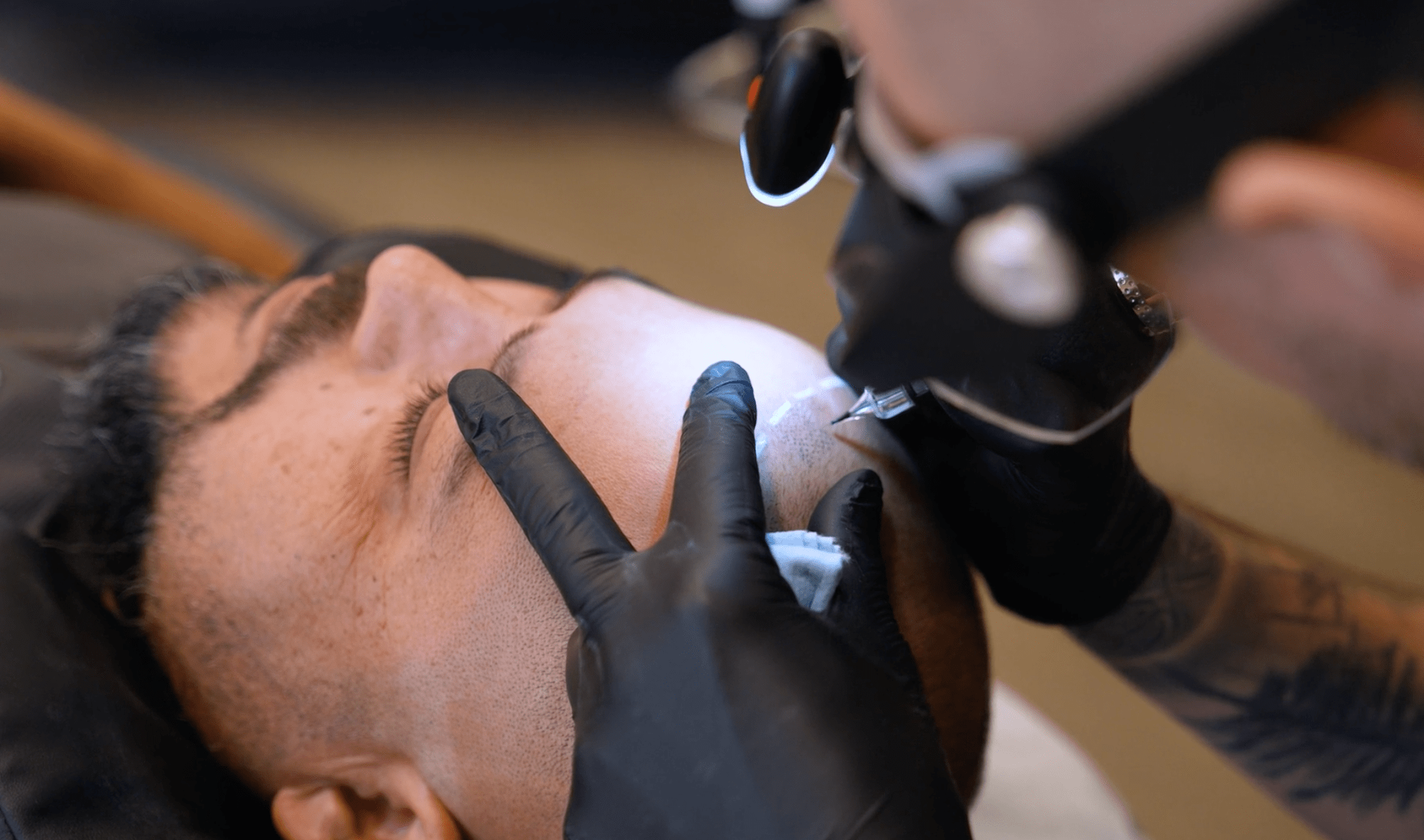 Renowned SMP artist, Marvin Furrow doing a scalp micropigmentation treatment.